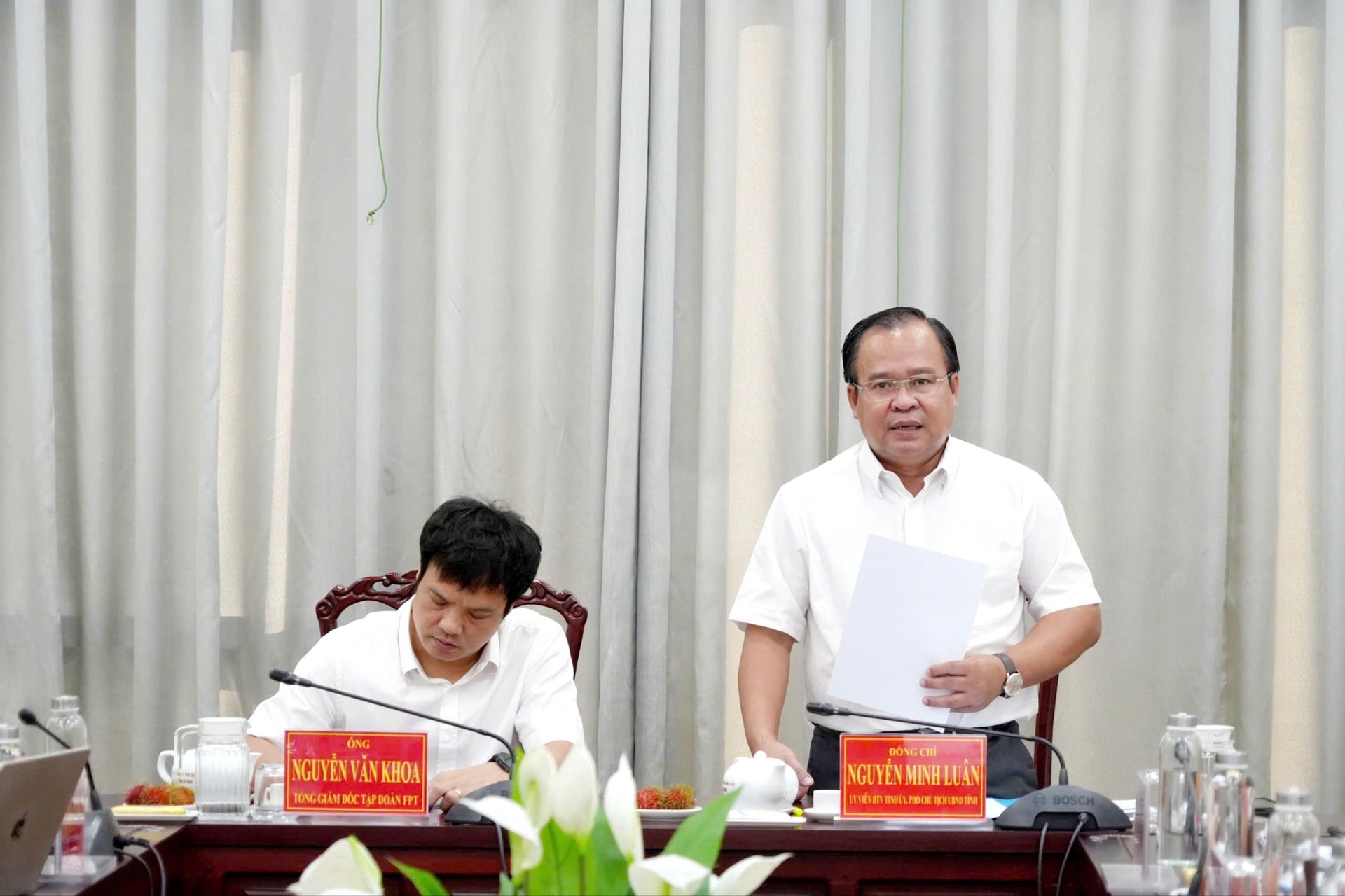 Phó Chủ tịch UBND tỉnh Nguyễn Minh Luân đề nghị các sở, ngành phối hợp chặt chẽ với FPT, thống nhất giải pháp để đạt hiệu quả cao nhất.