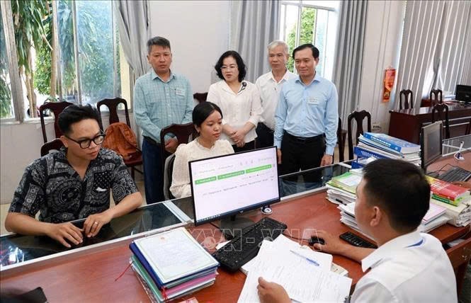 Lãnh đạo Sở Khoa học và Công nghệ tỉnh Đắk Lắk kiểm tra việc vận hành Trung tâm Hành chính công tại phường Bình Kiến, tỉnh Đắk Lắk (nguồn: TTXVN).