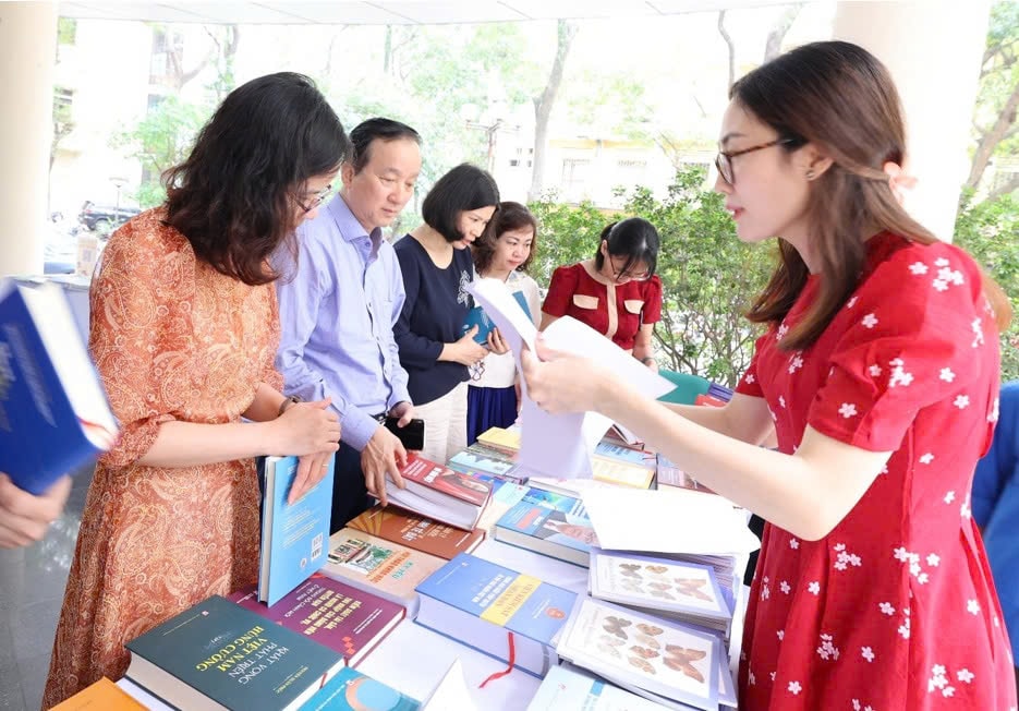 Triển lãm sách tại Trung tâm Dữ liệu và Thông tin khoa học- Viện Hàn lâm Khoa học và Công nghệ Việt Nam nhân Ngày Sách và Văn hóa đọc Việt Nam (21/4).