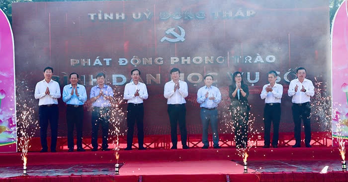 Phát biểu tại buổi Lễ, Bí thư Tỉnh ủy Đồng Tháp Lê Quốc Phong cho biết, “Bình dân học vụ số” là một lời kêu gọi mạnh mẽ của Đảng và Nhà nước nhằm đưa tri thức số, kỹ năng số và công nghệ số đến với từng người dân, từng hộ gia đình, từng xóm/ấp, đặc biệt là những người yếu thế, người chưa có điều kiện tiếp cận với công nghệ. Với tinh thần “Toàn dân học số - Toàn dân tiến bước cùng công nghệ”, phong trào “Bình dân học vụ số” sẽ tập trung nâng cao nhận thức về chuyển đổi số cho mọi tầng lớp nhân dân, giúp người dân hiểu được lợi ích và vai trò của công nghệ trong đời sống, kinh tế và quản lý hành chính; hướng dẫn sử dụng cơ bản các thiết bị số; ứng dụng công nghệ vào sản xuất và đời sống, nhất là trong nông nghiệp, y tế, giáo dục...