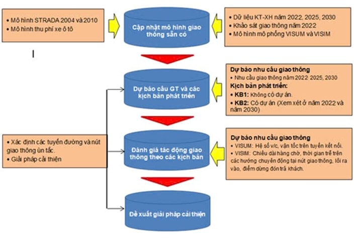 Hai là, thu thập số liệu để đánh giá hiện trạng đô thị và hiện trạng giao thông: Đề tài đã tiến hành khảo sát lưu lượng và nhu cầu giao thông qua nhiều phương pháp, như phỏng vấn, điều tra lưu lượng phương tiện, khảo sát tốc độ, khảo sát điểm đỗ xe. Các cuộc khảo sát này cung cấp cái nhìn tổng thể về hiện trạng giao thông tại Hà Nội, từ đó làm cơ sở dữ liệu cho việc hiệu chỉnh và dự báo mô hình giao thông.