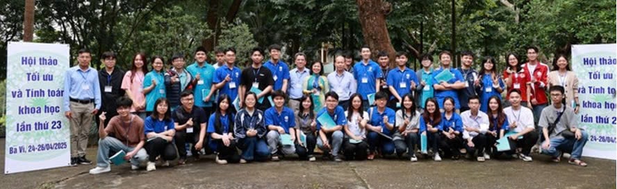 GS.TSKH Hoàng Xuân Phú chụp ảnh cùng các đại biểu trẻ dự Hội thảo Tối ưu và tính toán khoa học năm 2025.