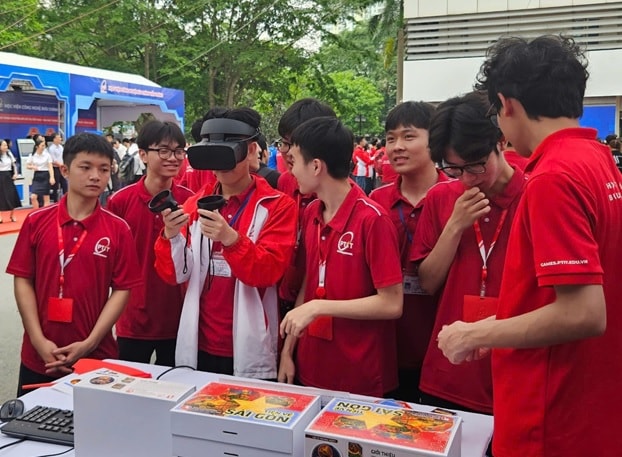 Sinh viên Học viện Công nghệ Bưu chính Viễn thông trải nghiệm kính thực tế ảo.