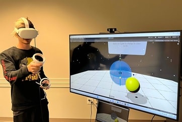 Nghiên cứu sinh ngành khoa học máy tính tại Đại học Central Florida (Mỹ) trình diễn ứng dụng trong giờ học dạy về khoa học thông tin lượng tử. Nguồn: www.ucf.edu.