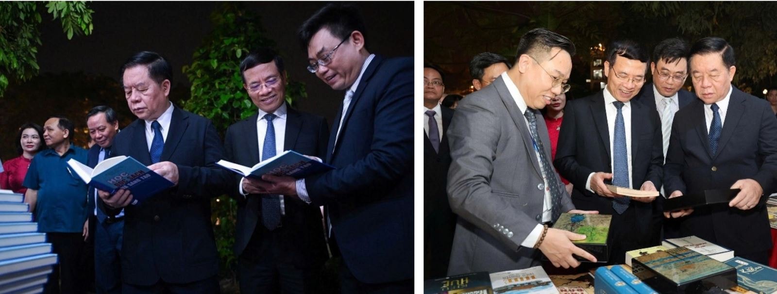Bộ trưởng Bộ Khoa học và Công nghệNguyễn Mạnh Hùng và các đại biểu tham quan Trưng bày các xuất bản phẩm của Nhà Xuất bản Thông tin và Truyền thông.