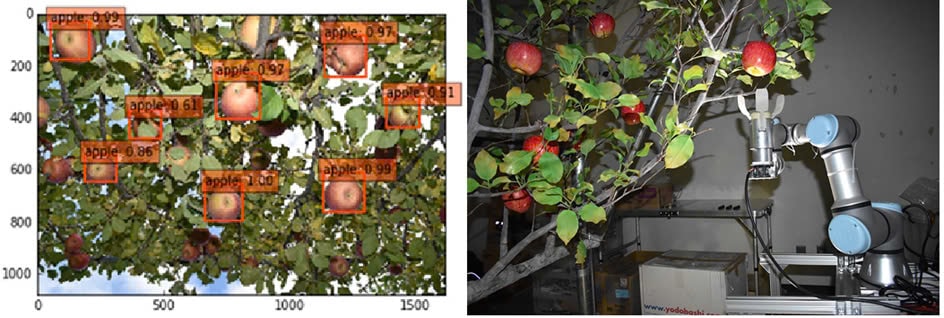 Hệ thống thị giác máy tính (Computer vision) giúp robot nhận diện và phân tích hình ảnh của cây trồng, đất đai và môi trường xung quanh, đưa ra những quyết định phù hợp. Ví dụ, hệ thống thị giác máy tính được phát triển bởi Onishi và cs (2019) cho phép nhận diện các quả đã chín, từ đó ra quyết định thu hoạch (hình 1). Trong khi đó, hệ thống thị giác máy tính của robot John Deere lại cho phép phân tích hình ảnh vật thể, bổi cảnh, từ đó cung cấp dữ liệu để quản lý cánh đồng.