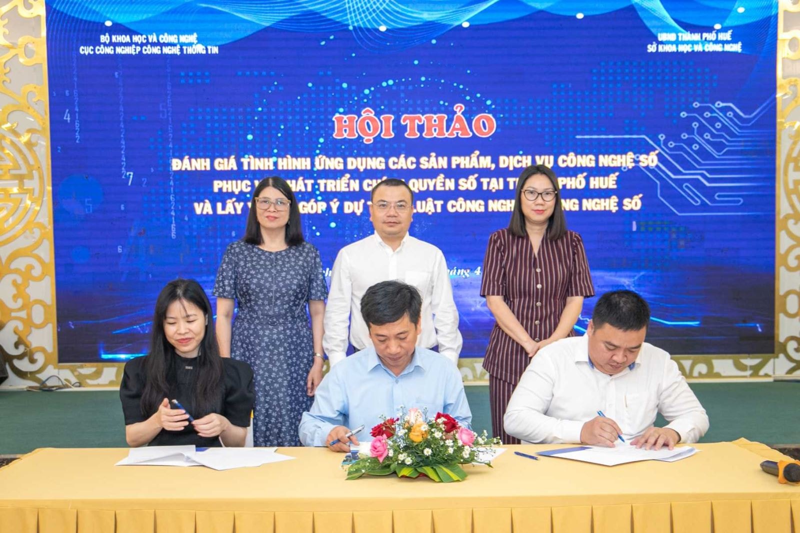 Một điểm nhấn của Hội thảo là Lễ ký kết ghi nhớ giữa Sở KH&CN Huế và các doanh nghiệp công nghệ như MobiFone, VTI Solutions đánh dấu bước khởi đầu cho các dự án thí điểm công nghệ số tại địa phương, mở rộng khả năng tiếp cận các giải pháp hiện đại cho chính quyền và người dân TP Huế.