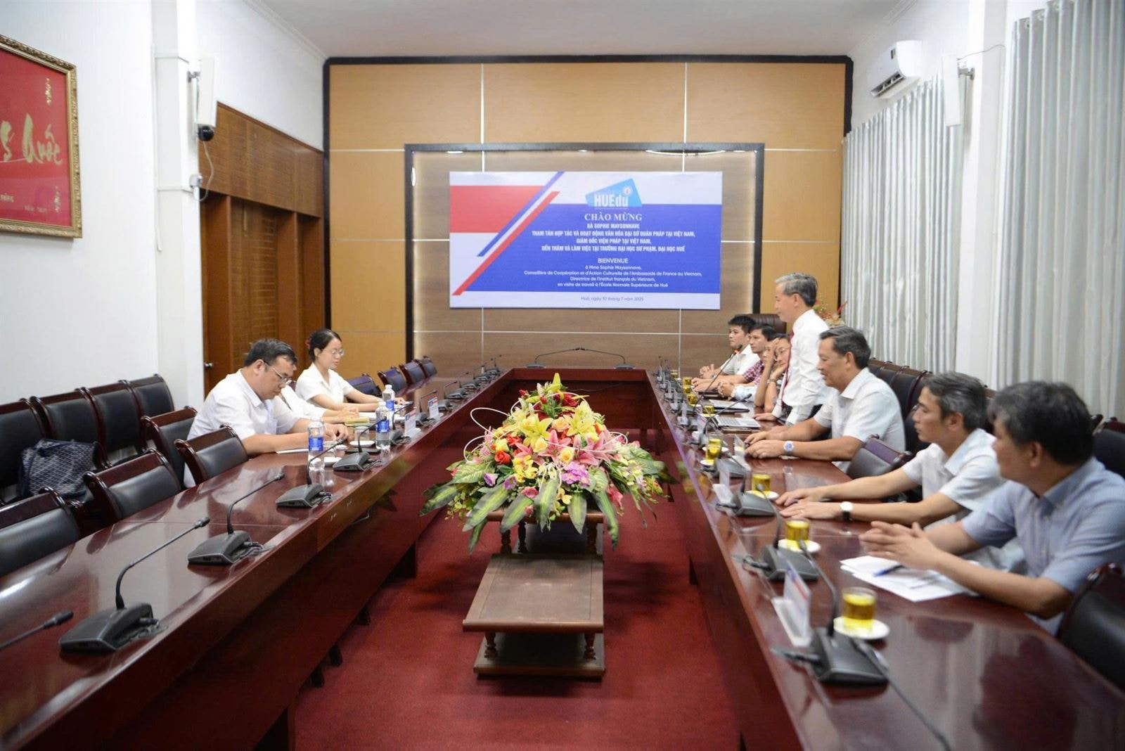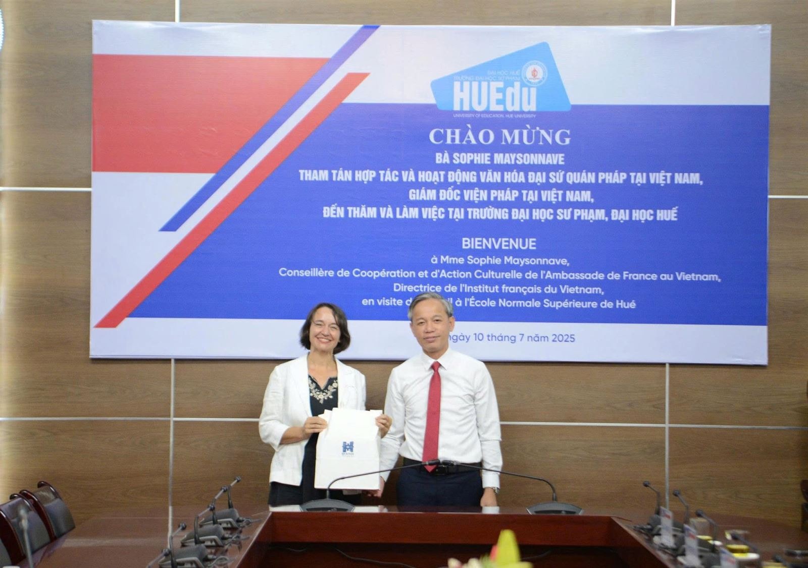 Vừa qua, Trường Đại học Sư phạm, Đại học Huế đã có buổi tiếp đón và làm việc với Tham tán Hợp tác và Hoạt động Văn hóa Đại sứ quán Pháp tại Việt Nam Sophie Maysonnave. Chuyến thăm đánh dấu bước phát triển mới trong mối quan hệ hợp tác giáo dục, nghiên cứu khoa học và văn hóa giữa Nhà trường và các đối tác quốc tế.